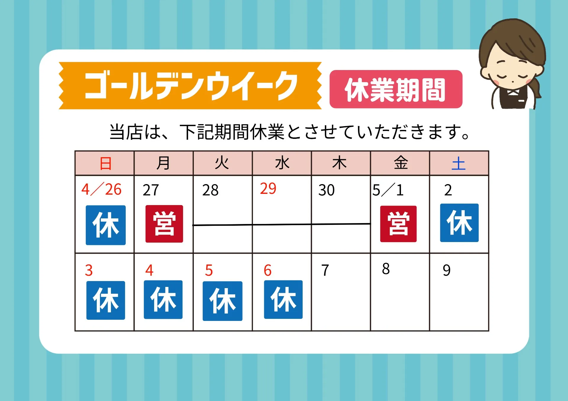 GW期間中の営業のお知らせ